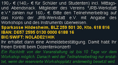 DIE WORKSHOPS WERDEN VERANSTALTET VON DER JRB-WERKSTATT E.V. IN KOOPERATION