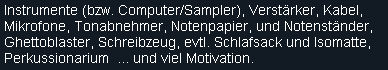[Home] [Wir über uns] [Jazz-Rock-Blues-Werkstatt] [Themen-Workshops] |